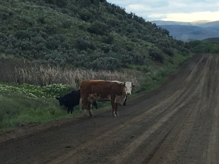 Next morning we were briefly stopped by cows wandering across the dirt road – life is good!