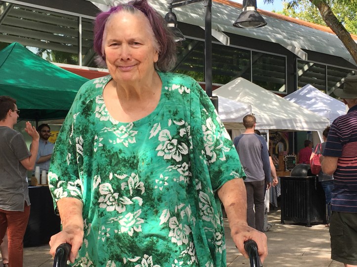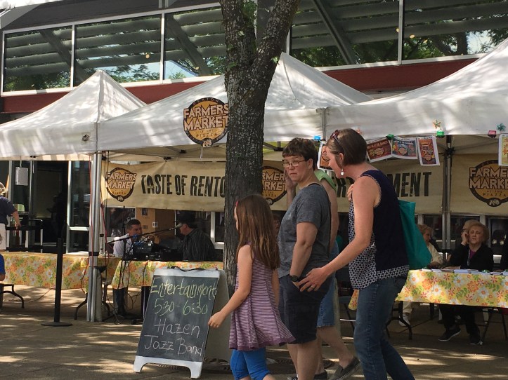 Then we took them to the Renton Farmers Market, Tom in his wheelchair & Merry with her walker. It was a gorgeous springlike day, clear and cool, we even got a good view of Rainier! Everyone had a great time & Tom was bright eyed and smiling!