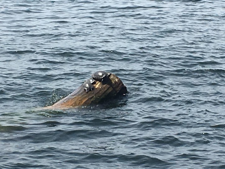 We saw two bald eagles soaring & hunting, one captured a nice sized fish in his talons!