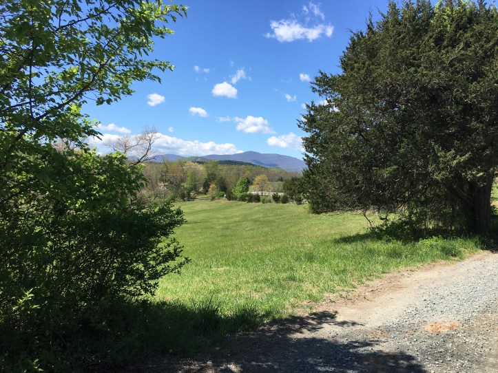 Some glorious views from our 3 1/2 mile walk down Batesville road today! Huge trees were swaying in the breeze, but it was a practically perfect spring day and we had the road to ourselves.
