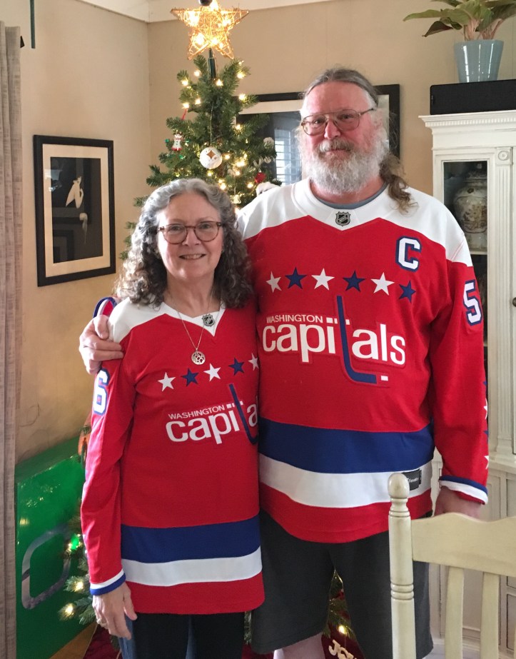 Josh, Mel & I went in together to buy Chris his jersey the year the Capitals won the Stanley Cup! His number was his age, 55, and as a nod to our passion for riding The Bike he got the Captains “C”!