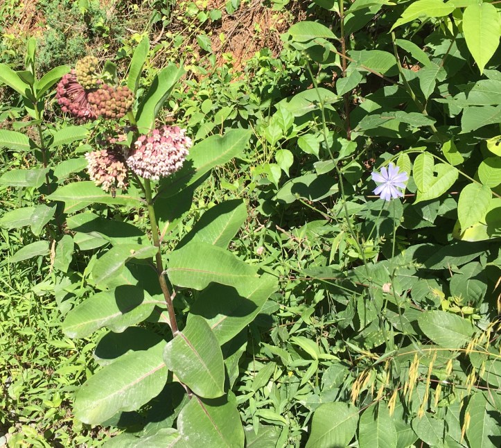 Chicory, milkweed, day lilies, blackeye susans and swaths of black cohosh are blooming. We pass over a couple of babbling brooks as well!