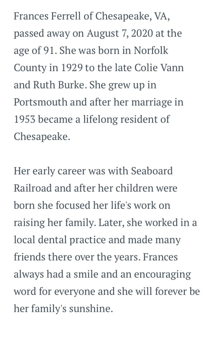 Aunt Frances always had a Miller Lite beer at 5pm. Today my brother Charlie in Florida, Cousin Larry in Chesapeake, hubby & I all lifted a toast to celebrate Aunt Frances at 5pm!