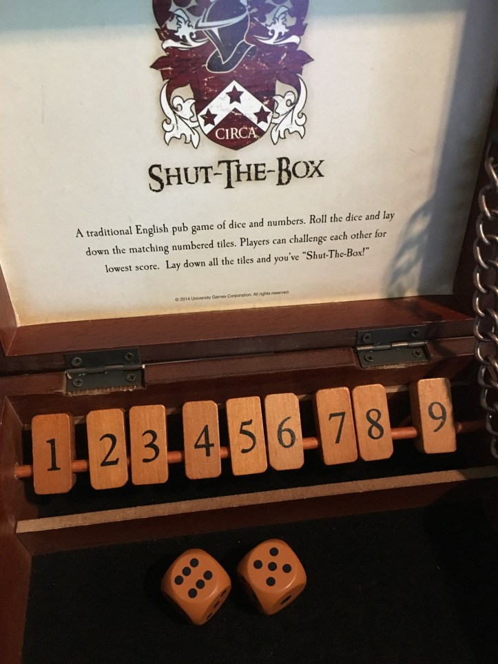 I bought one “Shut the Box” for us & one for Cousin Larry.