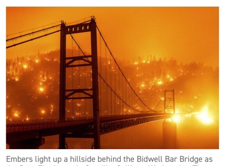 Massive fires sweeping thru the western states turning daylight skies apopoclyptic orange.