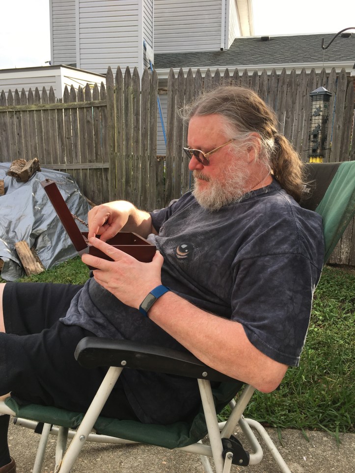 With Chris & I on one side of the fire & Larry in his man cave on the other. Frosty beverages were had, memories relived,