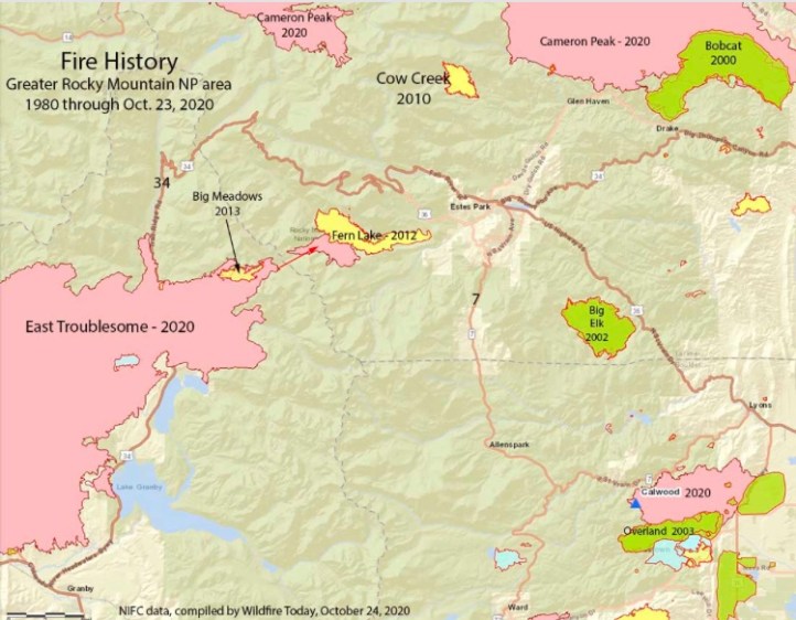 The East Troublesome fire is much bigger than that one. Here’s hoping the weather works in the parks favor, bringing snow to suffocate the flames.