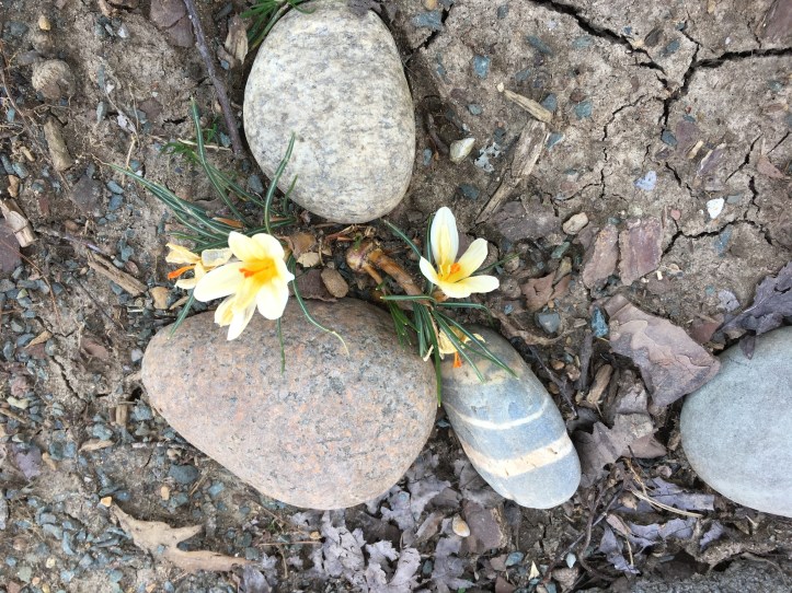 Are croaking happily in the little pond outside our bedroom! It’s a lovely sunny day in the 70’s, with cornflower blue skies & gentle breezes. Crocus are in bloom and daffodils buds are swelling!