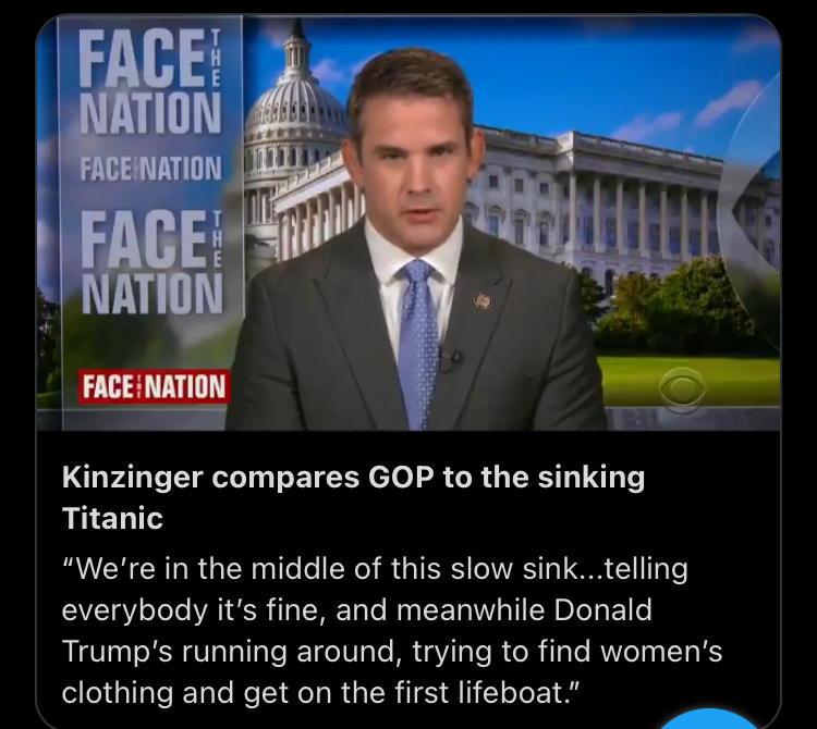 Rep. Kinzinger (R) also called out his party for their cowardly seditionist supporting attempts to whitewash Jan 6 & for their fealty to Trump.
