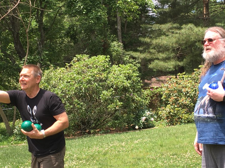 We played corn hole, & bocci balls. Relaxing post feast under the shade of a massive tulip poplar while Griffon (a very tenacious little dawg) attempted to “teach” hubby how to play fetch. Griffon decided hubby was a little slow… LOL!