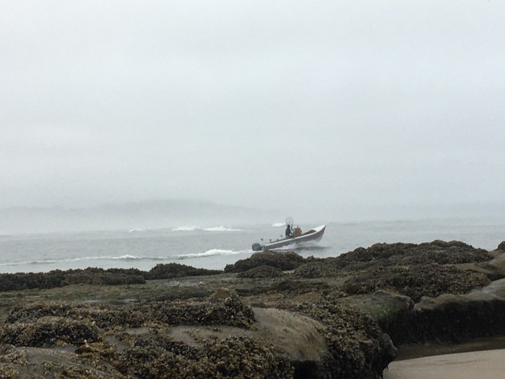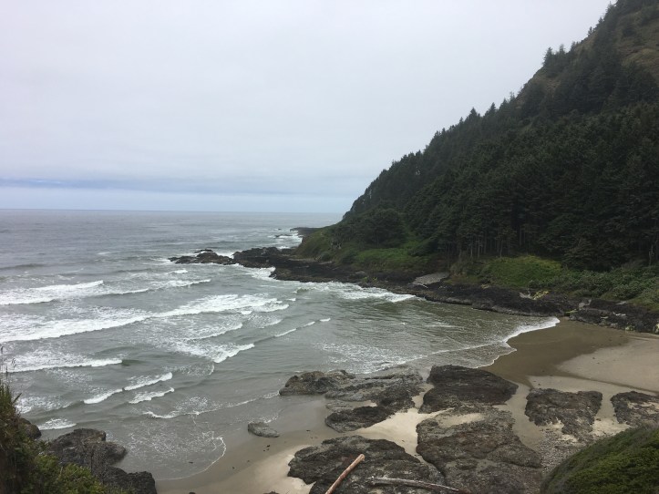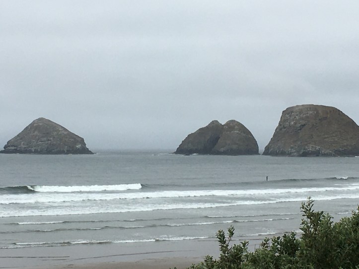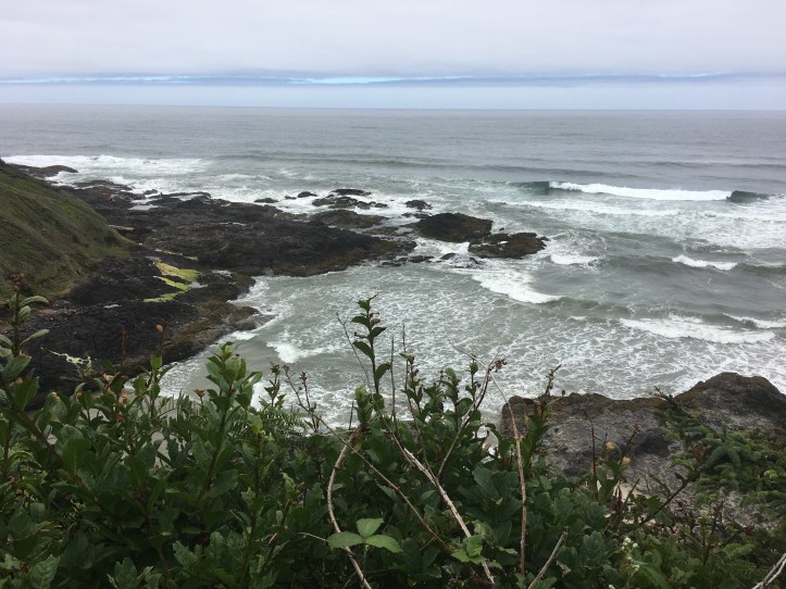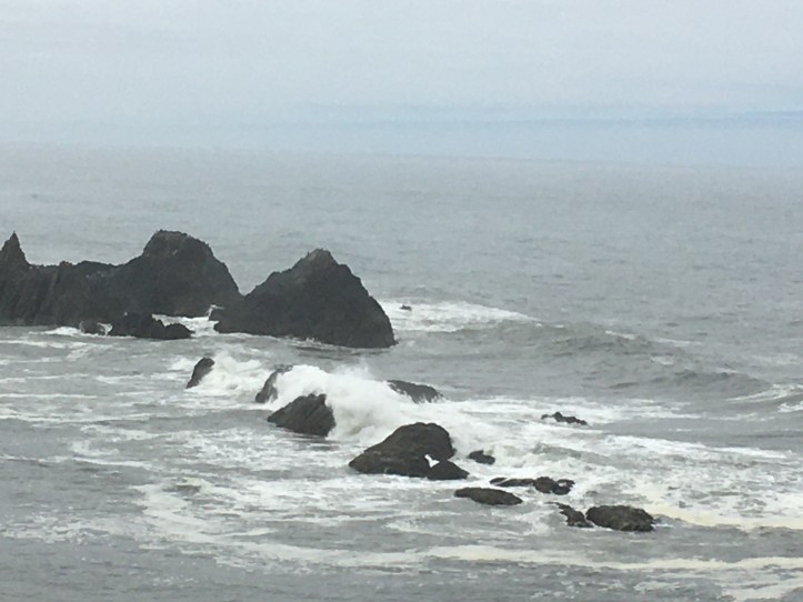 Finally – we saw a gray whale in Depoe bay! Chris saw it spout spray and I saw its back rise up before sinking below the waves! Another practically perfect day in paradise!