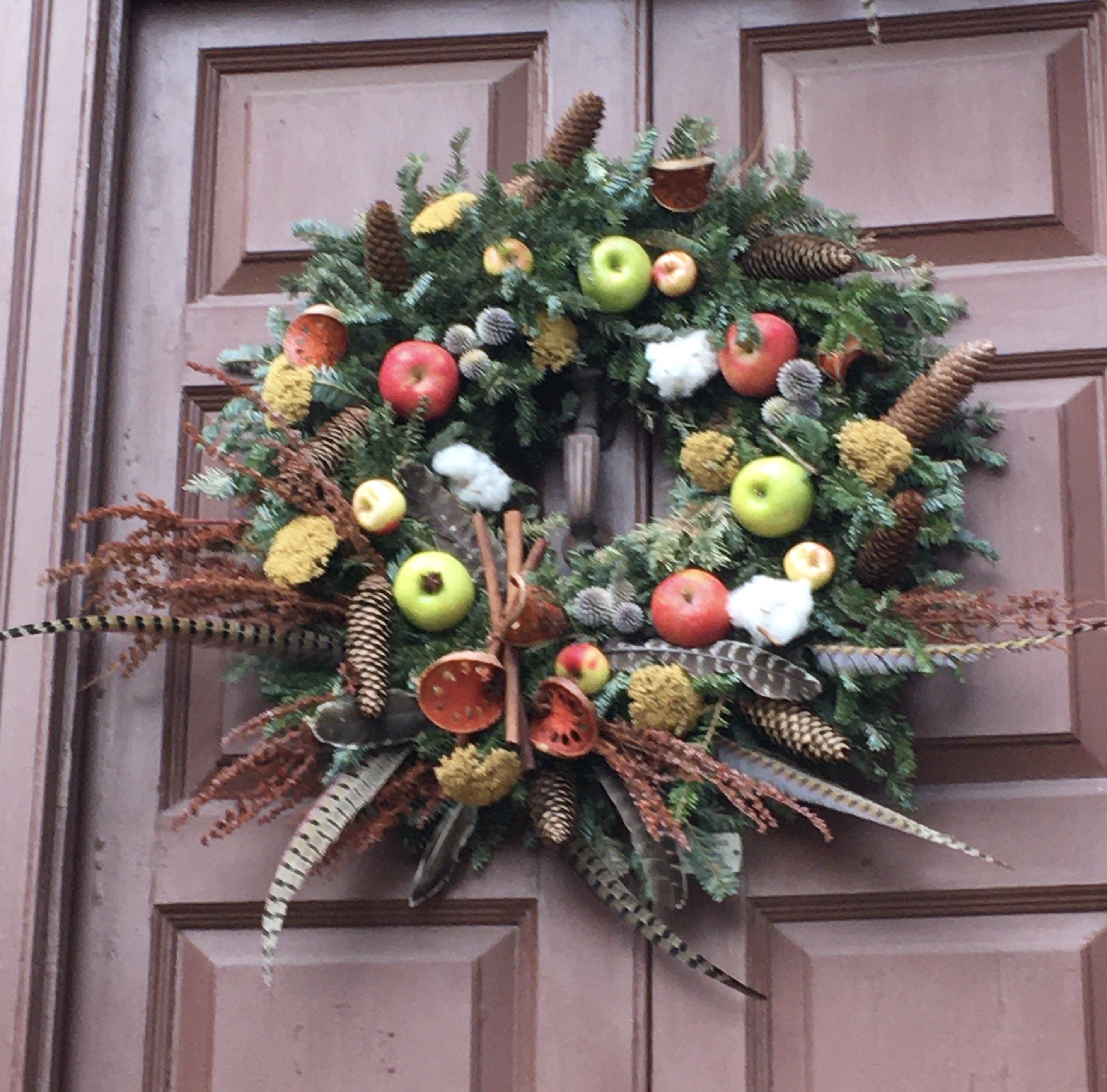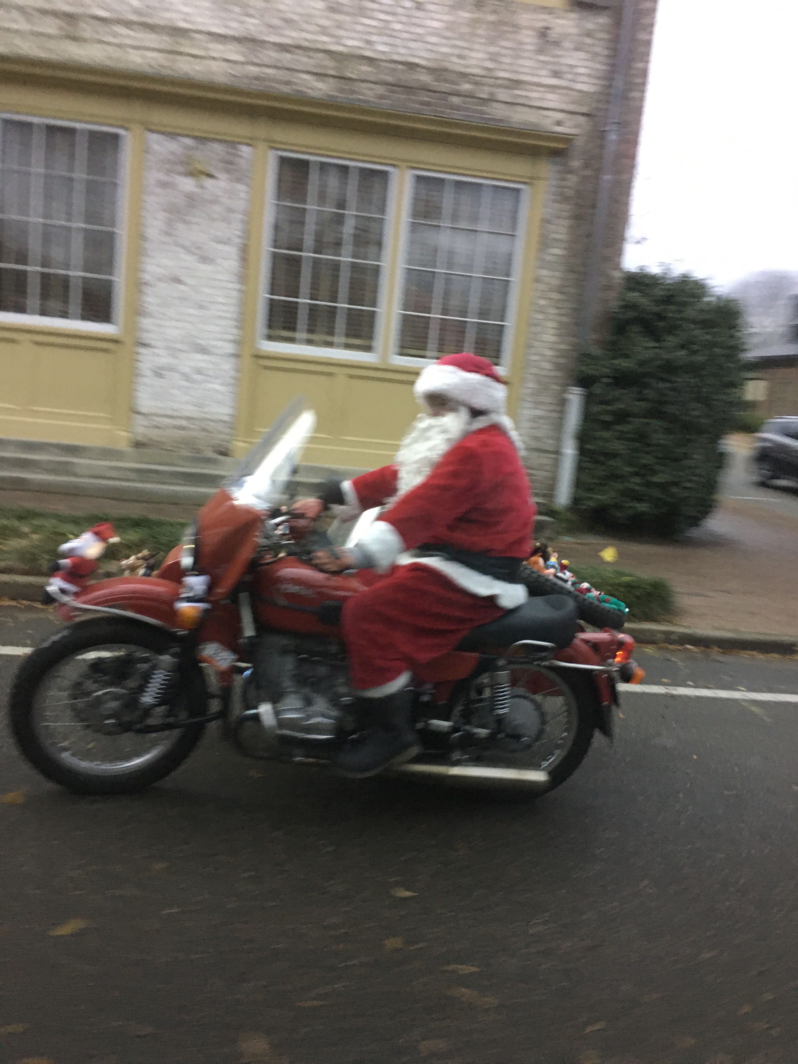Saturday Cousin Larry & Shea picked us up for a glorious picnic lunch at Pierces Pit BBQ! Thus sustained we drove over to tour Colonial Williamsburg in all its festive glory! We even saw Santa cruising on his motorcycle with plates saying “Born2bJolly”!