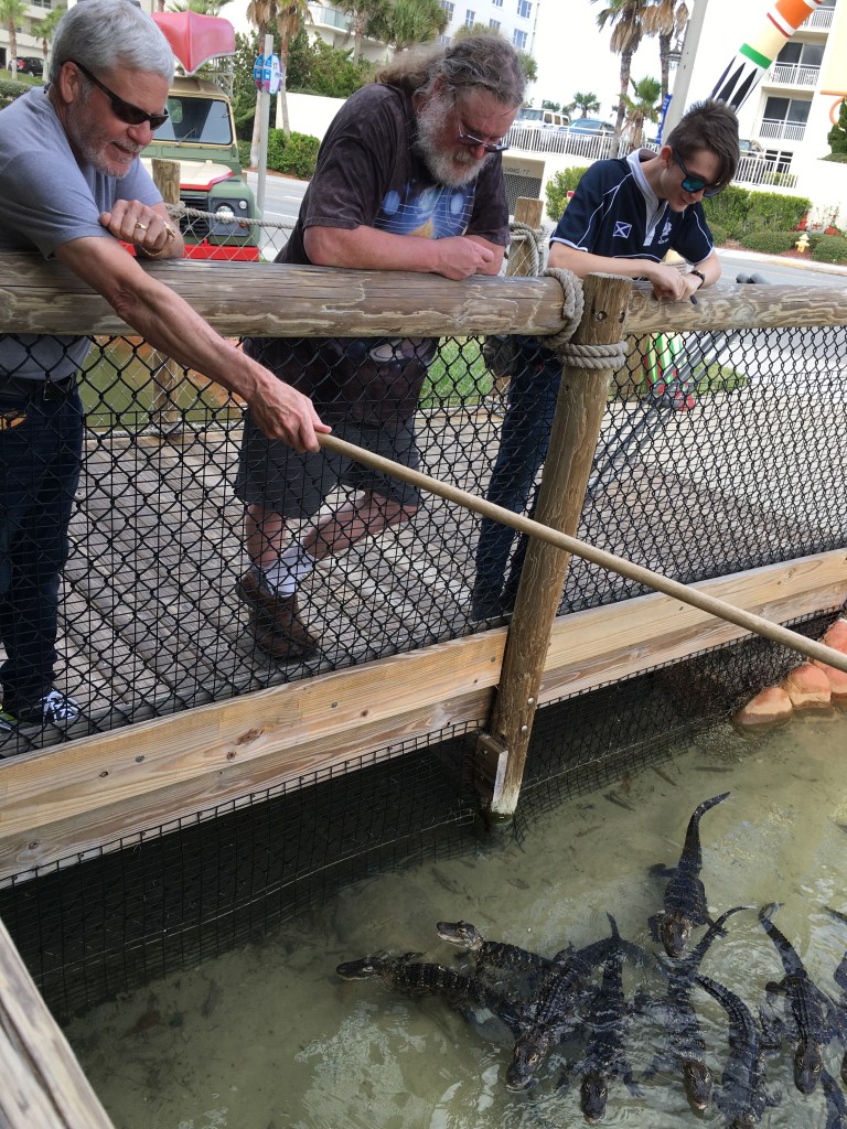 Our Florida family tradition of putt-putt golf “Christmas eve” continues! This year it was Christopher who scored the hole in one!!! Much to Tavish’s chagrin his papa beat him once again … BUT a totally new twist in the tradition was added! Feeding ALLIGATORS! Talk about upping our game! Well done Charlie!