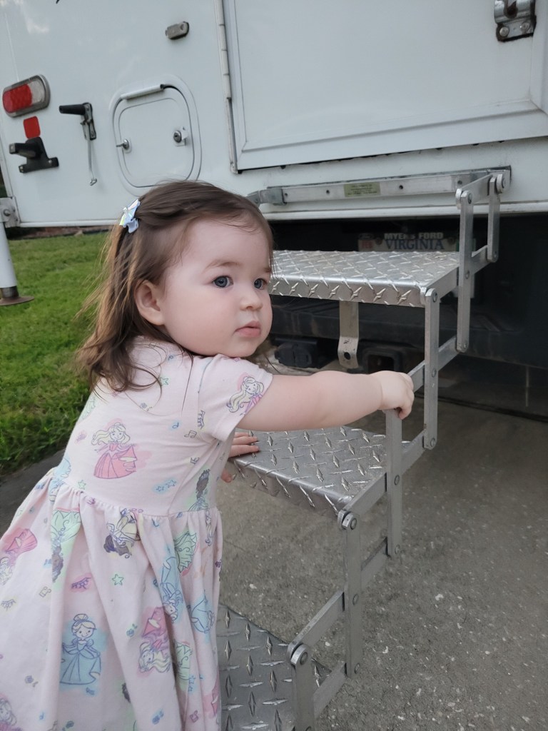 At one point Carys attempted to sneak into our camper and become a little stowaway!