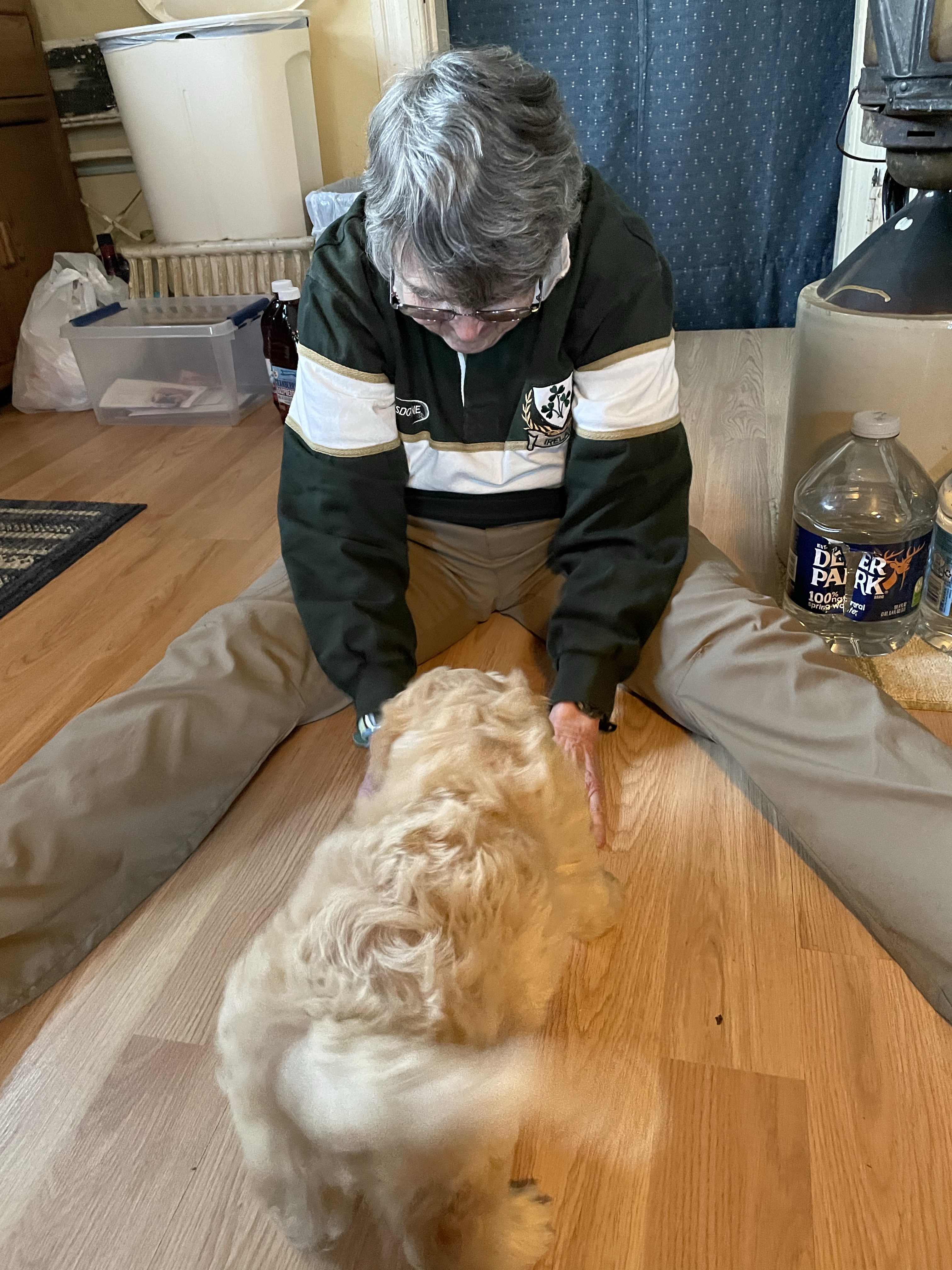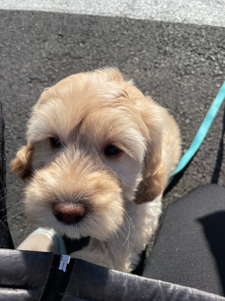 We decided we needed another silly dirtbag to make us laugh, as Jakie left such a hole in our lives. But a smaller furbeast, hopefully endowed with Jakes huge heart and gentle spirit. So we rolled the dice and ended up falling for a mini labradoodle!
