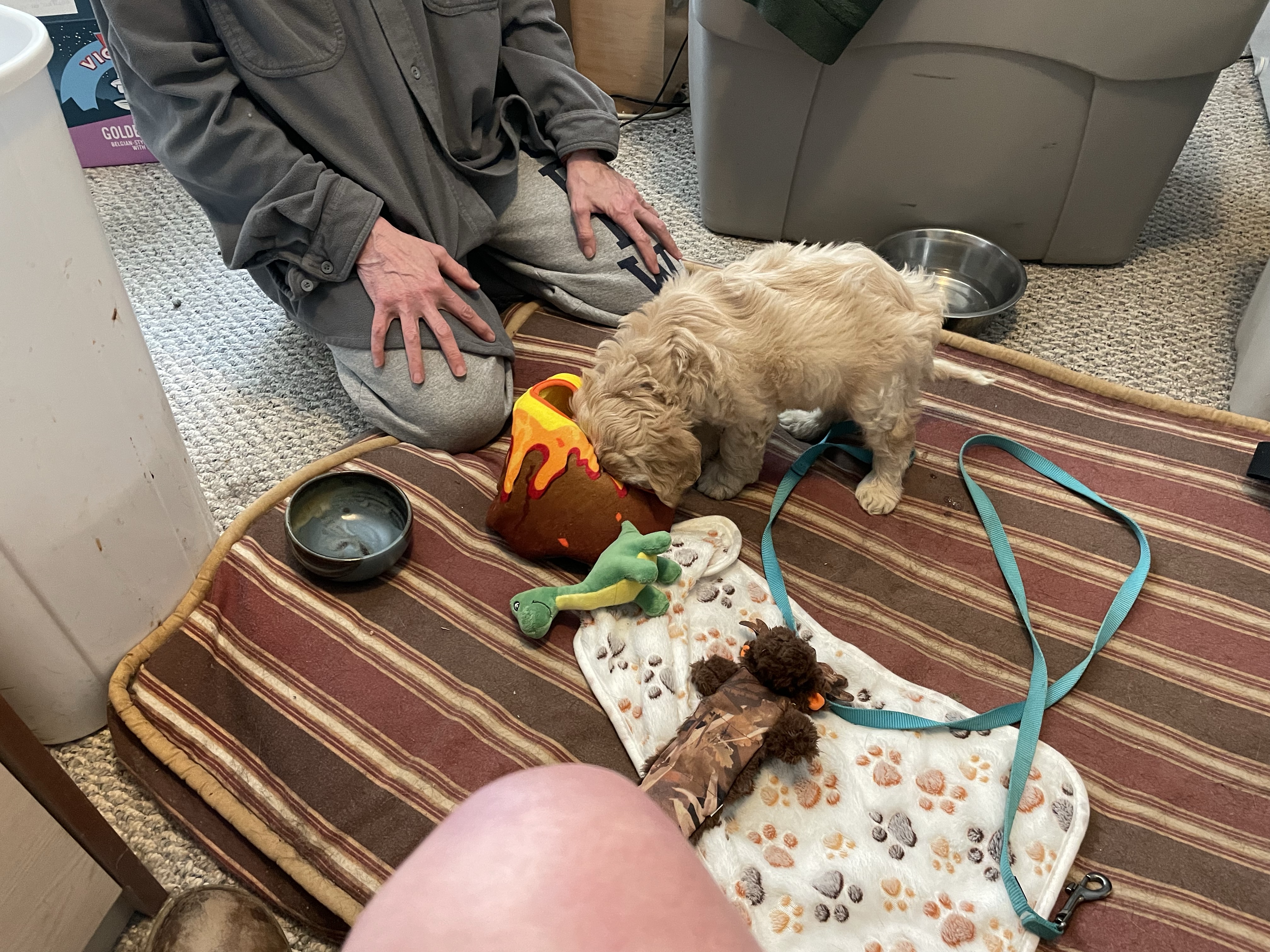 Each day brings new discoveries- he is delighted by sticks, pinecones, and the great big outdoors! So many things to smell! So much exploring to do! He careens between boisterous exuberance & utter exhaustion. He’s learning the house rules quickly, and seems to be a really smart boy – but he’s still *boy* enough to be mischievous too!