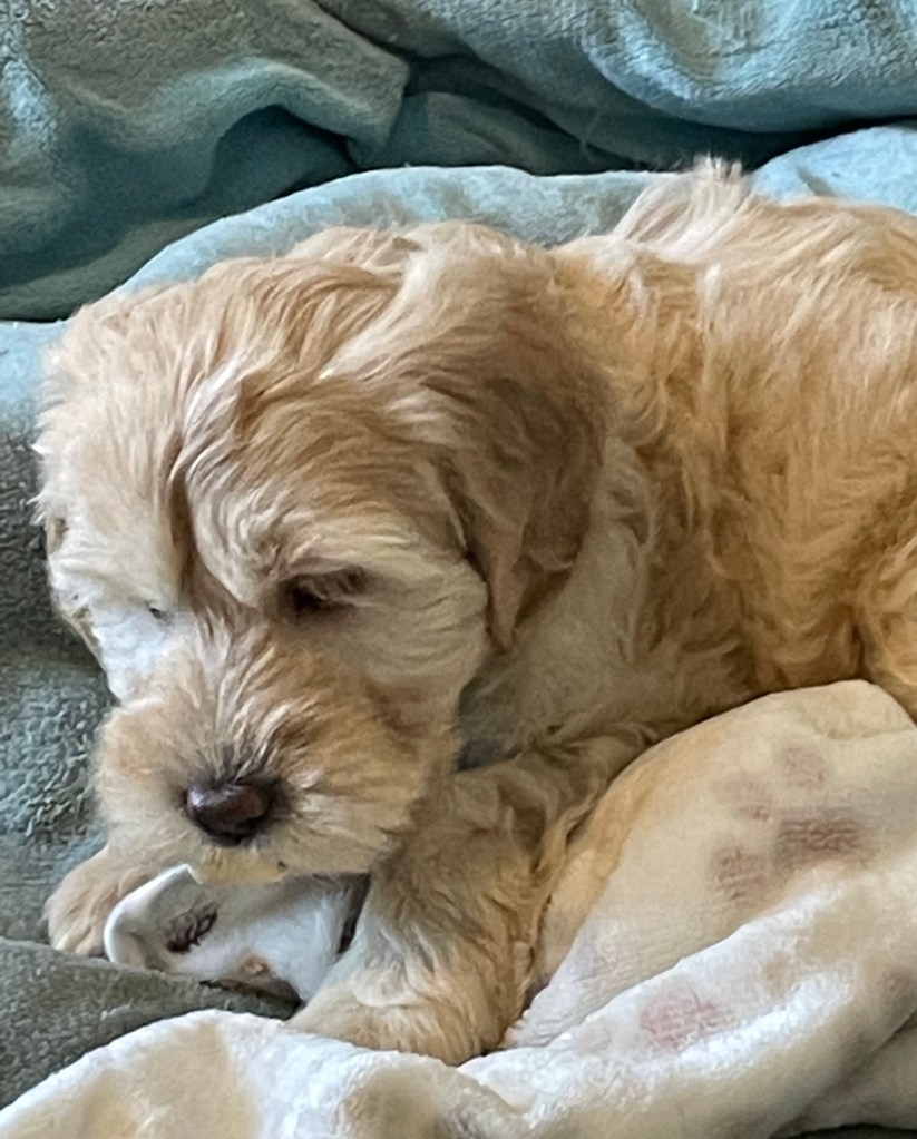 So much love in such a wee package. Seven pounds of delightful playfulness! We gave him his first bath yesterday – he was NOT a fan, LOL! Then after he was dry I used our woodsy scent detangling spray and combed out his coat to remove any tangles. He smells fabulous now! Which is good because he sleeps in our bed, and as *everyone* knows MY nose is sensitive enough to smell a flea fart at 500 feet!