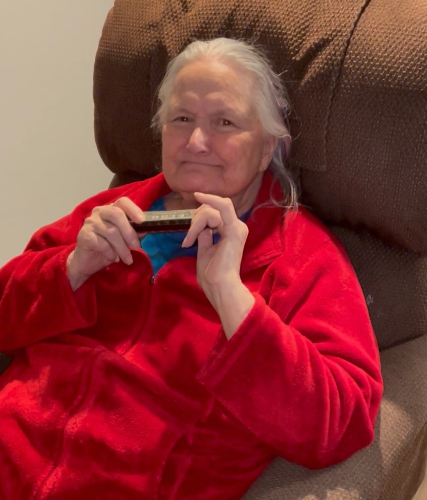 On Saturday we left puppy home & brought over teriyaki for lunch. Merry then serenaded us on the harmonica we had sent her a month ago!