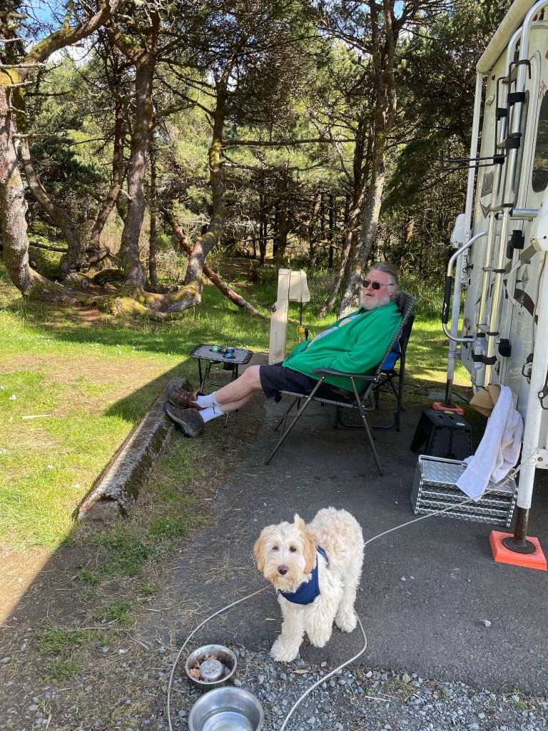 Day 2 (aka my 65th birthday) we went to see Til and Clark so we could get set up to help her do bills etc. Credit unions, DMVs, and credit unions again – oh my. Tomorrow we’re off to Cannon Beach!