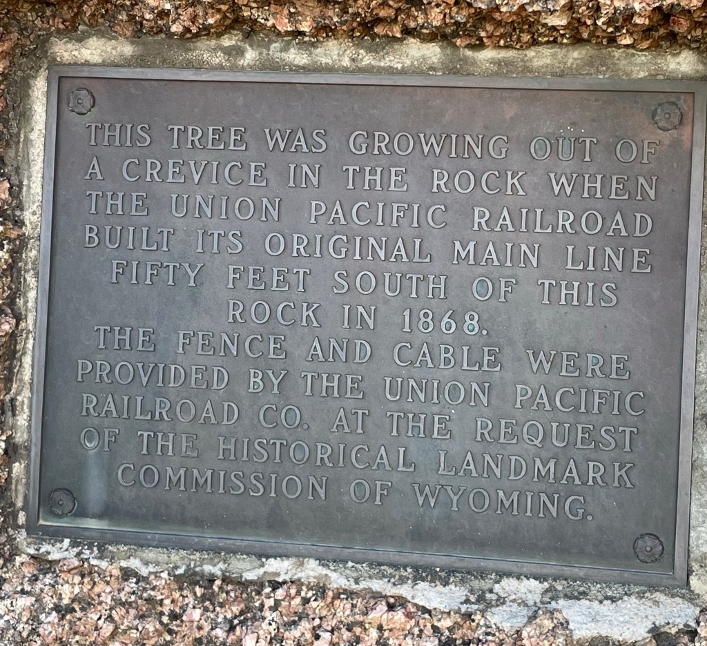 Our next stop also has a railroad theme! The little tree in the rock! The railway men were so taken with the spunky little tree growing out of a boulder that they moved the path of the railway tracks to preserve it! Now it resides between the east & west bound lanes of I 80.