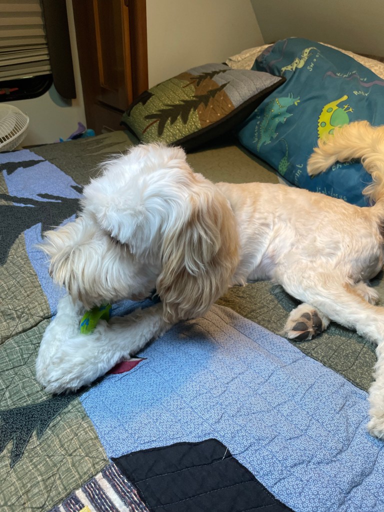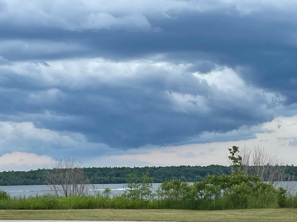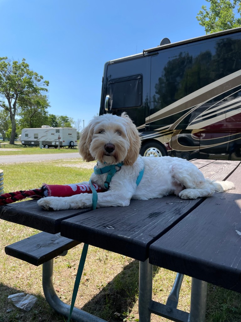 T Rex Richard (Simmons, he’s happy to help you lose weight – one toothy mouthful at a time!) sightseeing as we cross Lake Huron! Teeny tiny T Rex-adoodle was “scent-seeing” at the same time – so many new smells crossing the water!