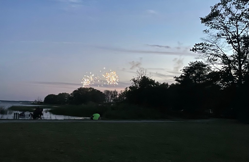 The intrepid campers gathered around the campfire at our site after delivering the taco feast to the house people. The city of Gladstone had ever so kindly postponed their 4th of July firework display until our arrival so – BONUS!!!