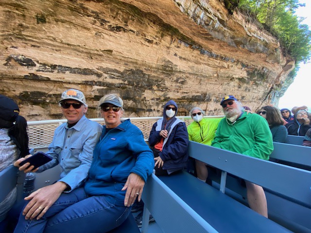 A truly wonderful day included a three hour boat ride to see Pictured Rocks National Lake Shore! We sat upstairs in the open air section, just fabulous! (Tho we did remain masked nonetheless)