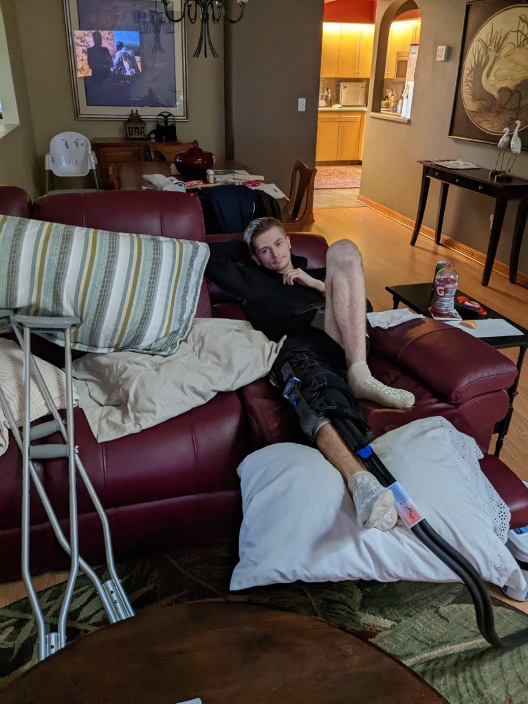Tuesday afternoon Chris was discharged with sprained ankles that he neglected to mention… But that is a story for later. Meanwhile in Florida, Tavish underwent surgery to repair his wandering kneecap. Mission accomplished with the addition of a cadavers ligament(?!?). Zombie!!!!
