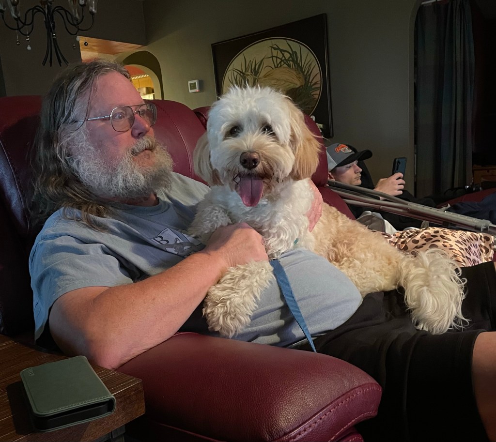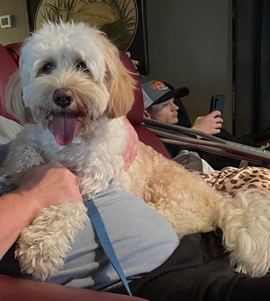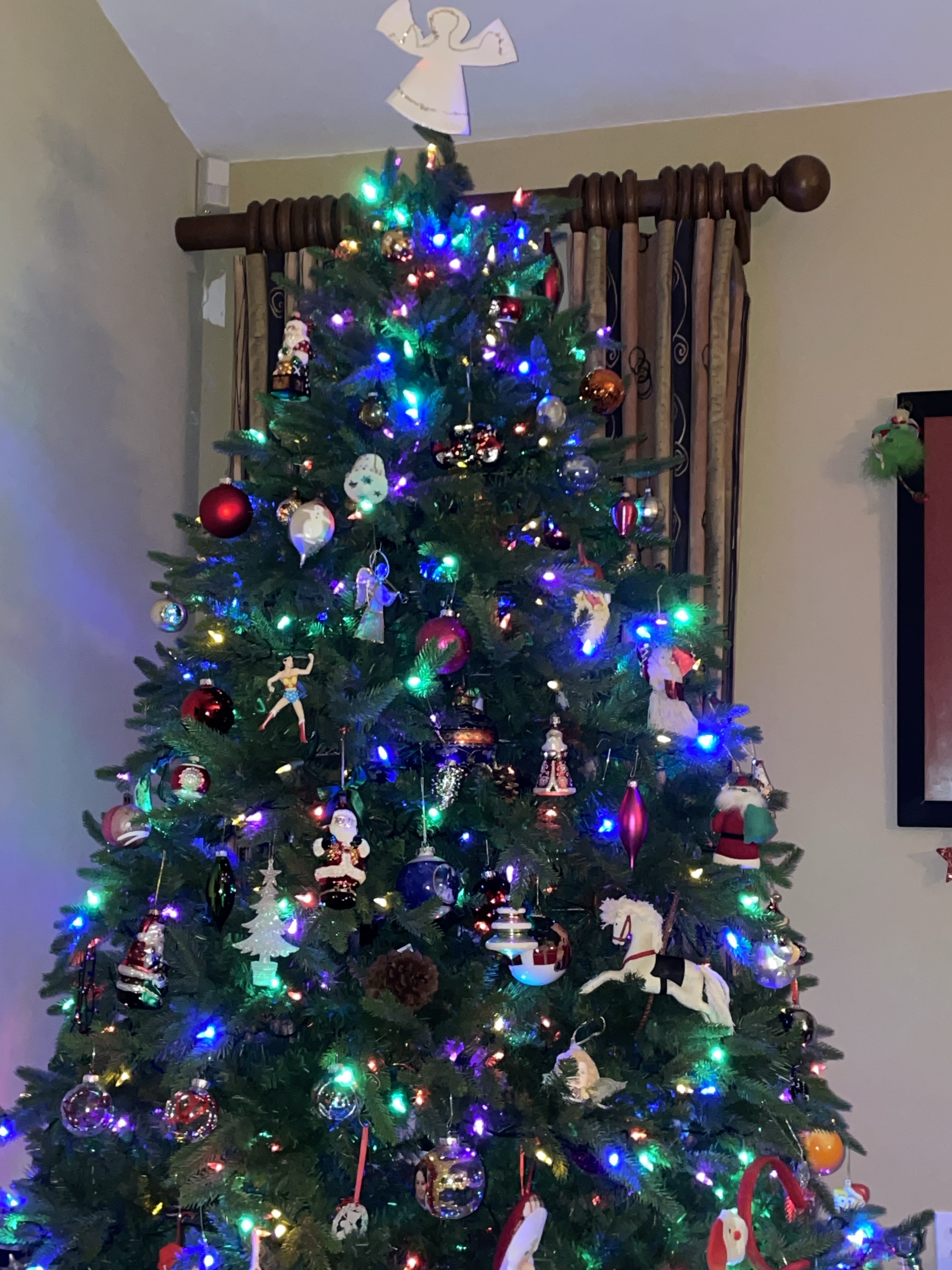 Charlie, Tavish, Chris & I took the little woof out for a walk in the neighborhood. What should we see but wood storks, egrets, AND a roseate spoonbill!!! After sunset we drove around admiring the holiday lights! Some were truly spectacular! Others made us laugh out loud – like the minimalist who put out his sign between two well decked houses saying simply “⬅️ Ditto! ➡️”