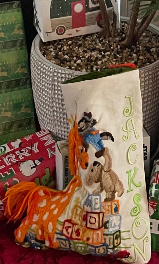 I also filled the stocking I made for Jacks first Christmas in the traditional Werz family way! With an orange in the toe, toothbrush, toothpaste, plus small toys and candy! I stacked the presents for Jack, Juliette & Michael, Mel & Josh next to the stocking under the tree. I think the sight will delight them when they arrive home! Of course the very FIRST thing they’ll see is their bouncing little furball Stella!