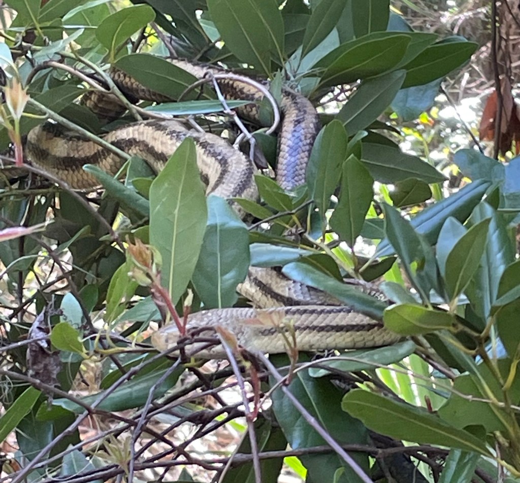 Afterwards Debbie, Paul, Mary & we wandered over to Fort Island, where we saw dolphins frolicking in the distance! There was a glorious snake enjoying his perch on the branches of an obliging tree in the hammock next to the boardwalk.
