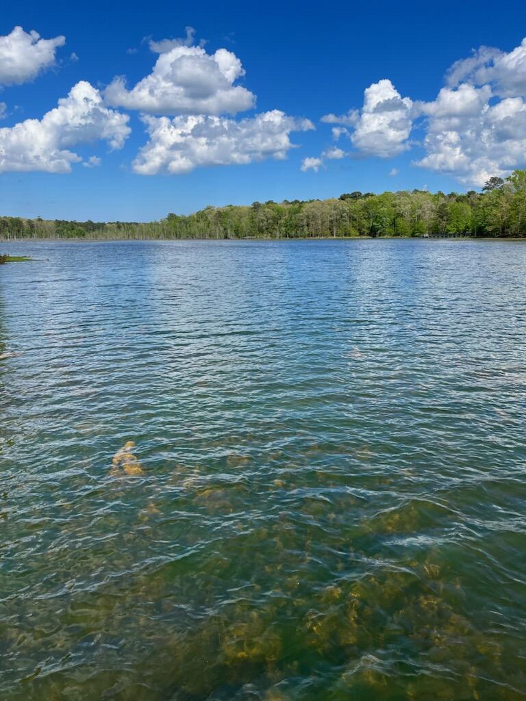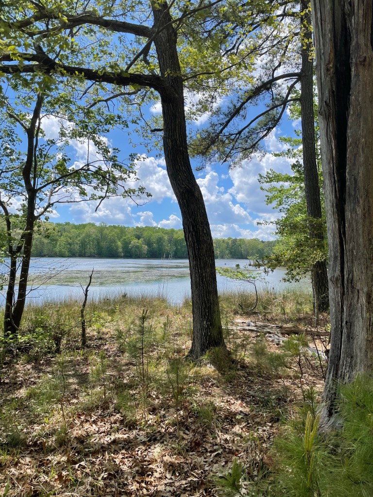 Walking across the lake with wonderful breezes to cool us off was immensely better than bushwhacking along a “trail” in the forest! Leo even dried out! And a gazillion various species of turtle in the water and marsh were doing spring mating dances!