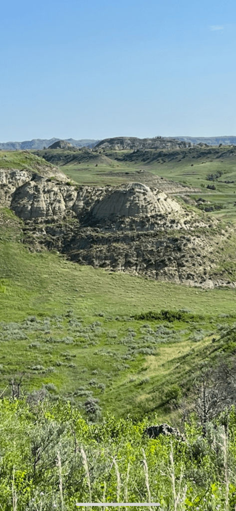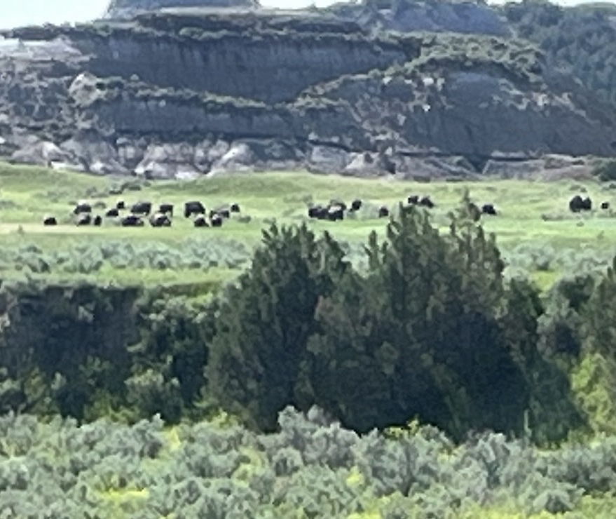 So far on this trip we’ve seen pronghorn antelope, elk, mule deer, magpies and a glorious flock of white pelicans! Then Theodore Roosevelt National Park gave us herds of buffalo, wild horses, wild turkey, loads of prairie dogs & a lone coyote!