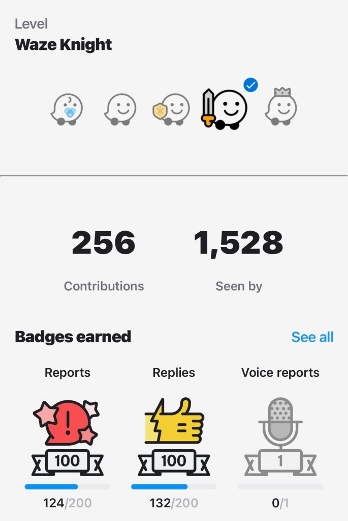 Not to brag, (totally bragging- LOL!) but we have now been promoted from Waze Warrior to Waze Knight!!!