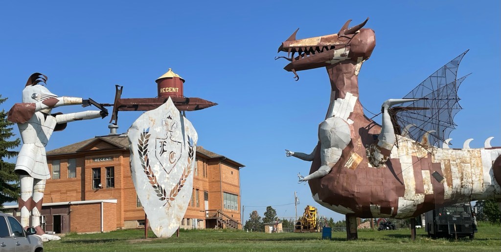 As you know, I am always on the lookout for offbeat oddities so is it any wonder that I devoted the next day to just that! We took a trip down the Enchanted Highway in western North Dakota for a glimpse of classic weird & whimsical roadside art. Giant metal sculptures line the highways leading from Regent to Gladstone for just over 30 miles!