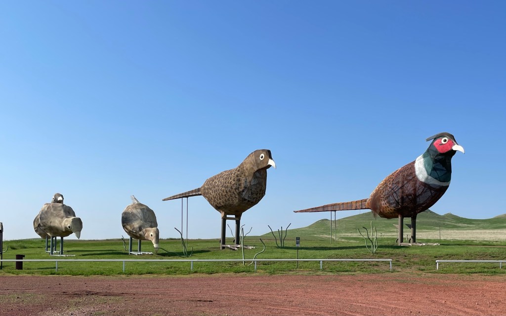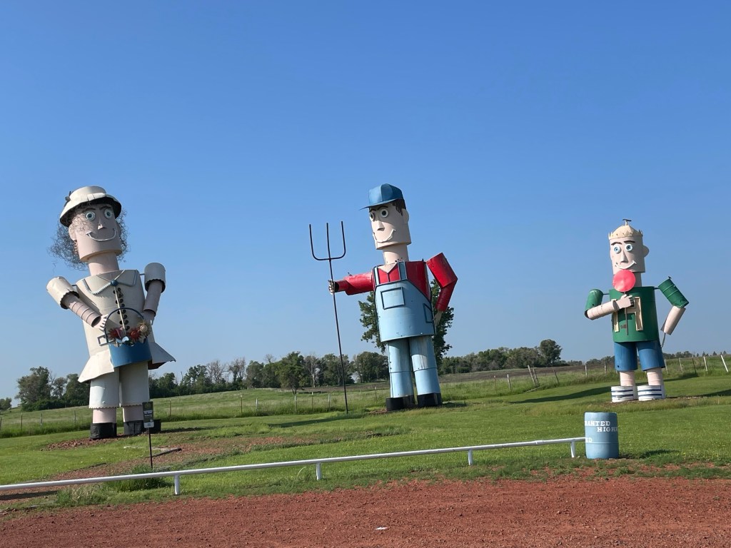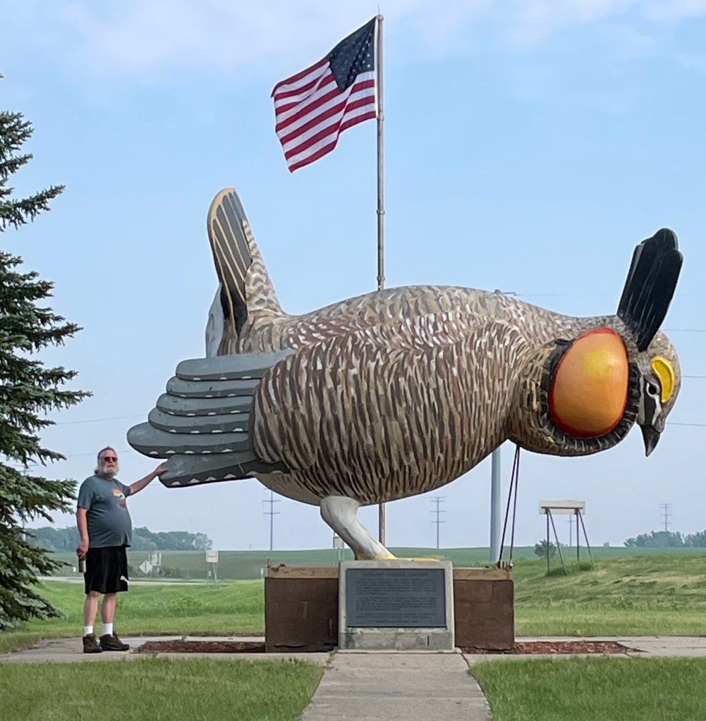 In Rothsay, Minnethotah we took a moment to visit the greater prairie chicken statue! It depicts a male prairie chicken with his cheeks puffed out in a mating display. This strange little bit of Americana was designed as Rothsay’s contribution to America’s 1976 Bicentennia!