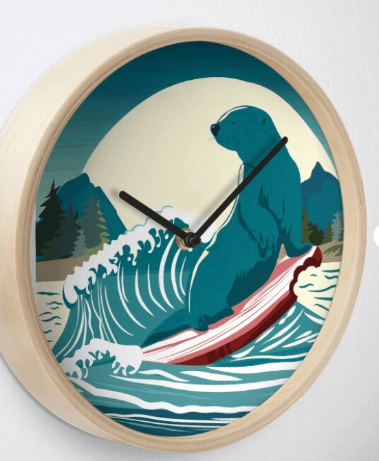 Is this not adorable? I just ordered it as a clock for the camper!!! It will be SO much cuter than the plain vanilla clock we have now. The story behind this is two fold. First Otter 841 has been in the news this summer for chasing surfers off their surfboards, even taking a bite out of the surfboard! (The videos are hysterically funny!) And two – Merry has always adored otters, so this is a little homage to her in our camper!
