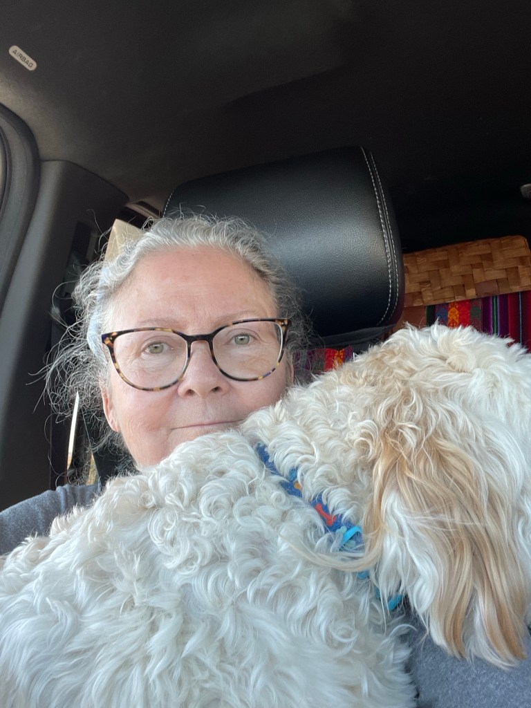 He finally settled down resting his upper body on the console, where he’s decided he is our co-pilot!