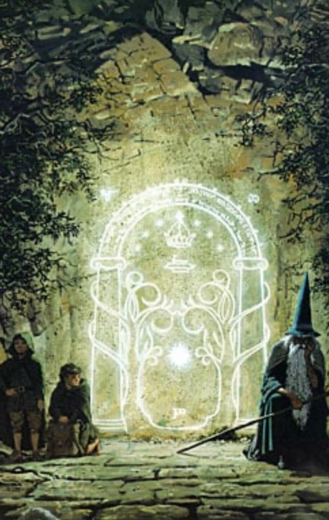 A nice nod to Tolkien, that! Perfect for nerds like us! For the uninitiated this is the answer to the riddle that opens the Door of Durin to enter the mines of Moria in Lord of the Rings! Daddy’s brass door knocker from his time in Korea adds a nice Elvish touch as well!