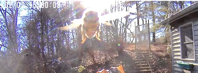 That first honeybee has returned with a freaking SWARM of friends!!! The camera is recording hundreds of busy buzzing bee videos!