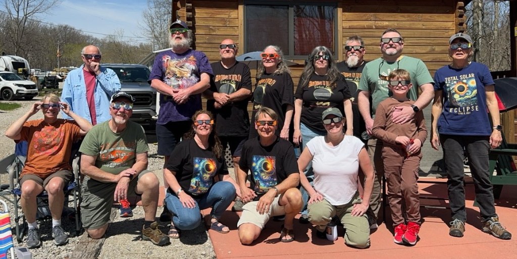 We gathered at the Brown County/Nashville Indiana KOA for the total solar eclipse April 8, 2024! “Murderers Row” had RVs for Josh, Mel & Jack, Debbie & Leo, Chris, the pups & I, Greg & Nancy, then Debbie & Paul!