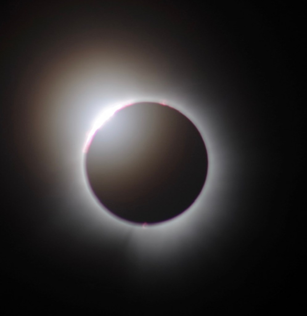 Four fascinating minutes later the sun began peaking out from behind the moon, the skies instantly brightened, temperatures rapidly climbed, and the cricket chorus went silent!
