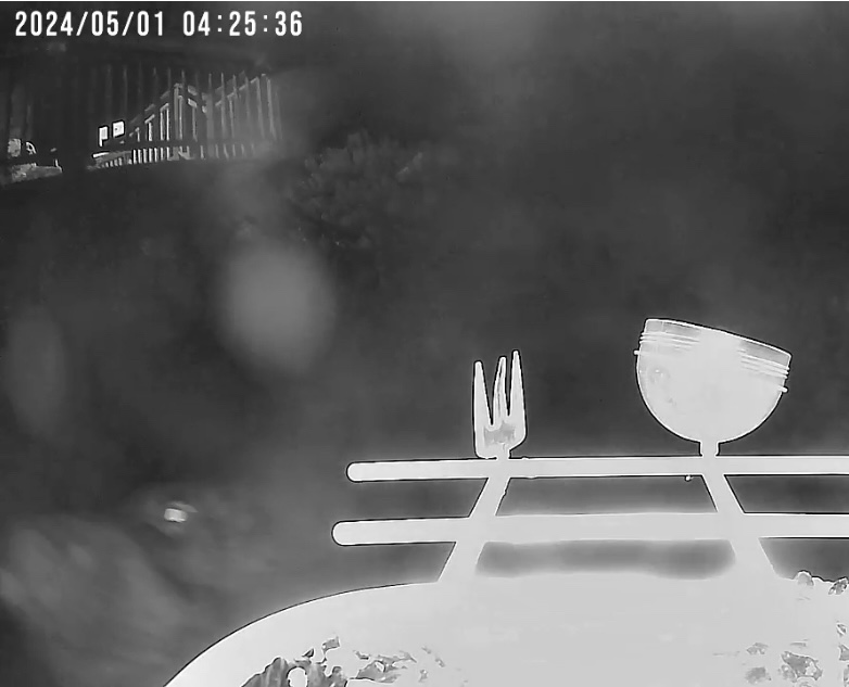 Surprise visitor at our birdfeeders predawn… A massive black bear, who completely destroyed all feeders except my BirdSnap! You can see his profile in the lower left.