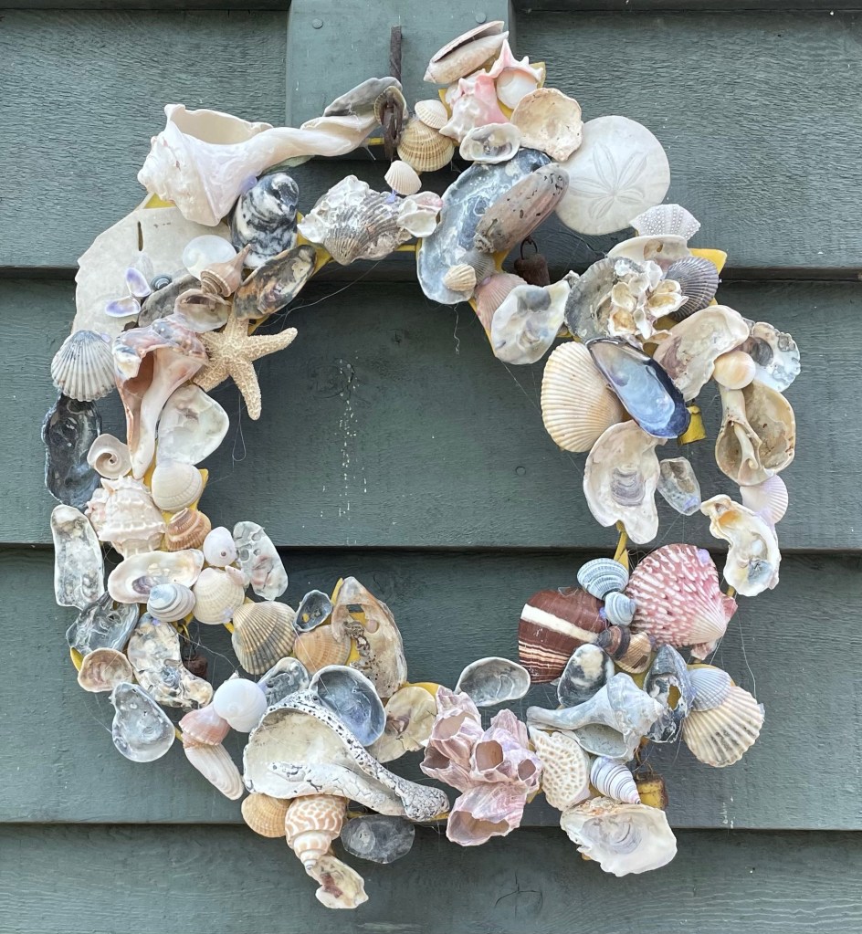 Cousin Larry is coming up this weekend for Batesville Day but I took the afternoon off to craft a decorative seashell wreath for the porch. Turned really well I think!