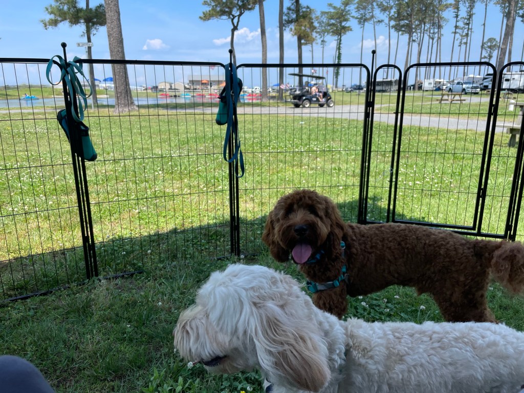 Josh & Mel invited us to join them for Memorial day weekend camping trip in Cape Charles, Virginia! Initially we had One Grandson, Two Couples, and Three Doodles in two campers! Great fun was had chasing Jack through the three separate kiddie pools in the water fun park at the campground!