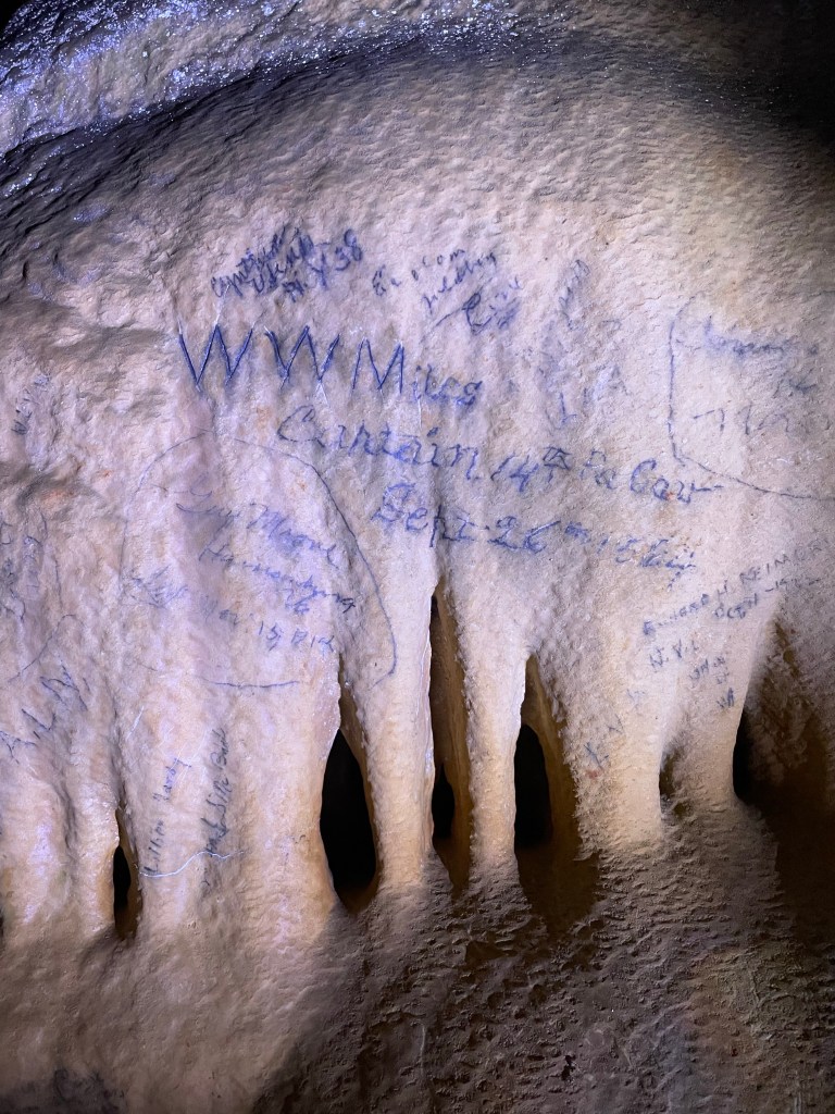 After a leisurely Monday morning we set off for Grottoes cavern, the oldest show cave in the world! It’s walls are enscribed with autographs by both Union & Confederate soldiers during the Civil War. Sometimes even on the same day?!?