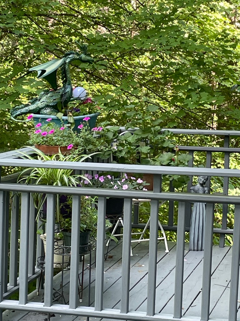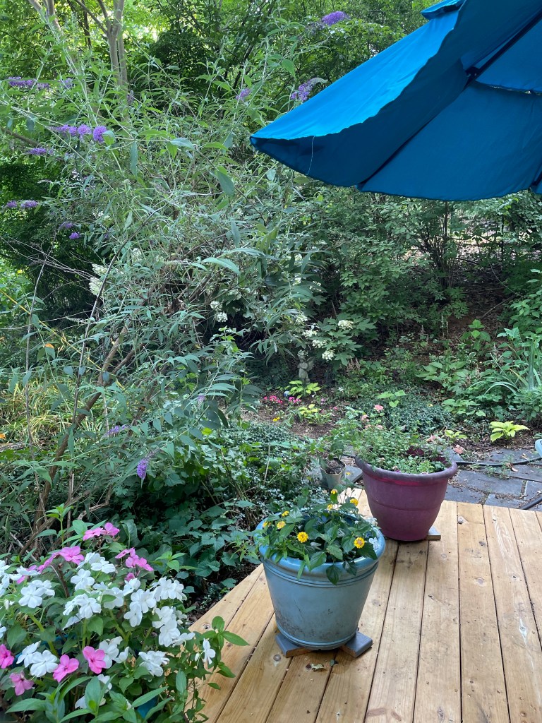 When we got back home my new teal umbrella for the deck was waiting for us! Bonus!