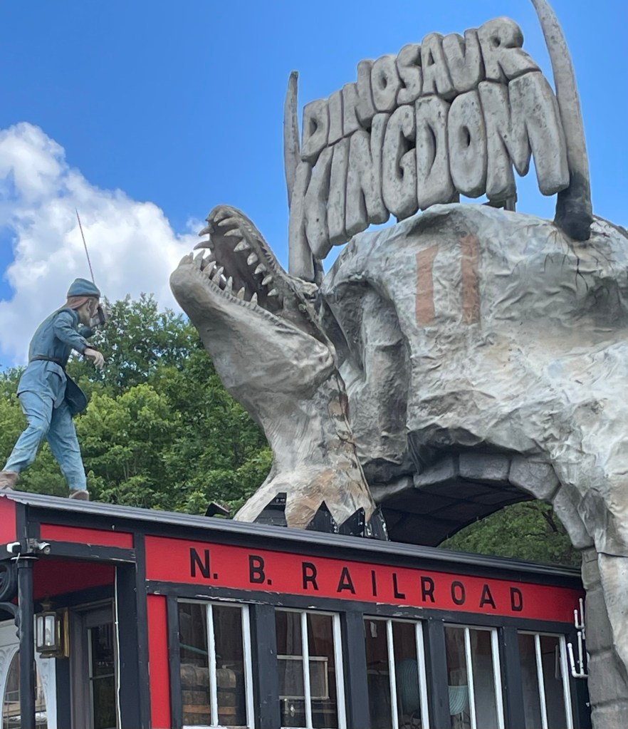 On the drive home we popped into the parking lot of Dinosaur Kingdom II to get a couple photos of weird & whacky roadside art. It’s a bizzare little park that bills itself as the number one tourist attraction in Virginia(!). Created by the slightly demented ‘genius’ who gave the world Foamhenge – a lifesize reproduction of Stonehenge made of foam…