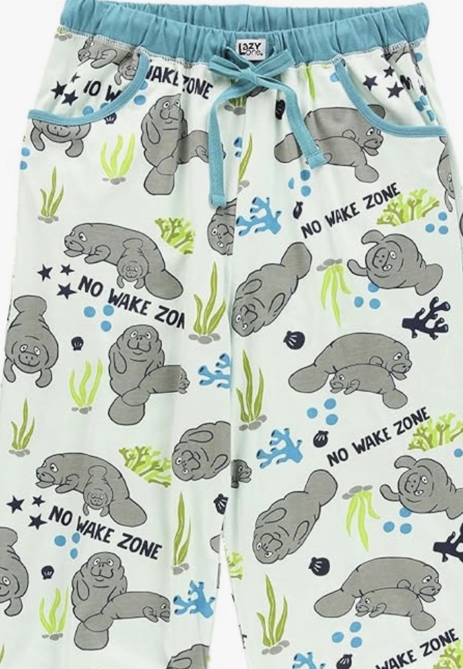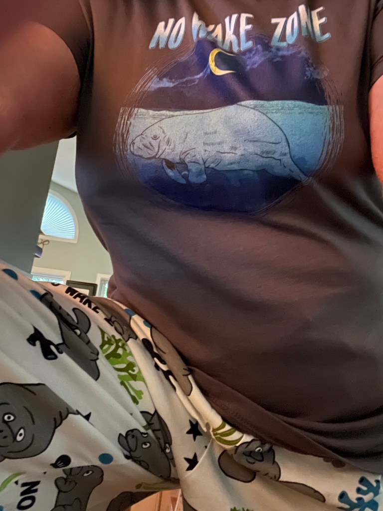 Beth Anne showed me the most adorable pj pants while we were in Michigan, No Wake Zone manatee pj’s. I simply HAD to have a pair for myself so the first thing I did when we got home (after unpacking the camper) was to order a pair!