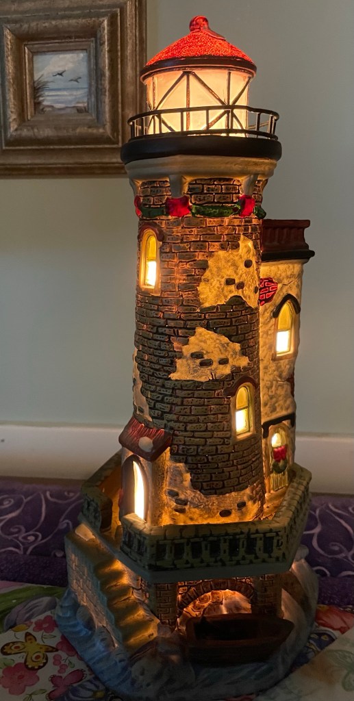 AND it lights up – then the upper light blinks like a real lighthouse!!!